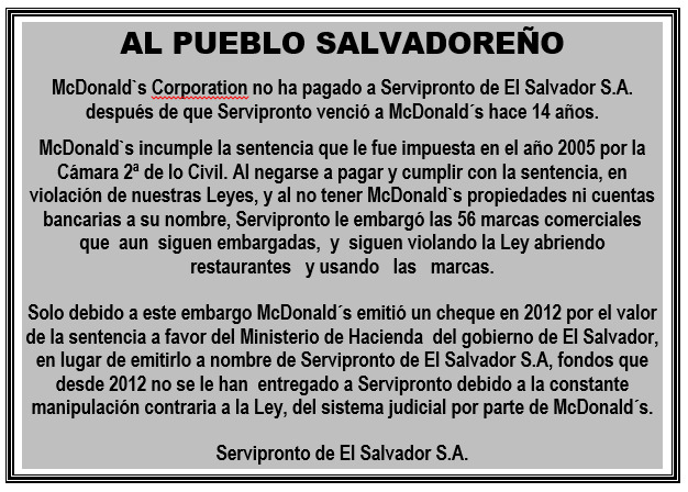Comunicados y anuncios CAMPO PAGADO: Mcdonal`s incumple sentencia judicial 19 marzo, 2019 El Independiente