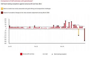 La pérdida de un día, que superó con creces la pérdida máxima anticipada por los modelos de valor en riesgo de HSBC, fue inusualmente grande para un mercado en el que los bancos líderes, HSBC y JPMorgan, generalmente ganan alrededor de $ 200 millones en un año entero. En otras palabras, en un día, HSBC perdió un año entero de ingresos.
