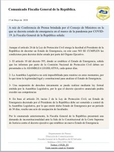 DestacadasEntorno Fiscalía General de la República presentará demanda de inconstitucionalidad contra decreto ejecutivo que establece nuevo Estado de Emergencia 17 mayo, 2020 El Independiente