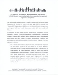 La Asociación Promotora de Derechos Humanos de El Mozote, ante la sociedad salvadoreña y comunidad internacional expresa :