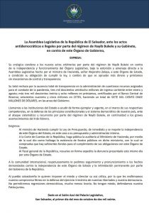 Comunicados y anunciosDestacadas Comunicado de la Asamblea Legislativa ante los actos antidemocráticos e ilegales por parte del Ejecutivo 2 octubre, 2020 El Independiente