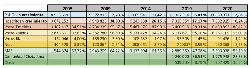 Voy a hacer tres reflexiones cortas sobre elementos relevantes que parecen percibirse en la cultura política boliviana ocupando el cuadro electoral de los últimos cinco procesos de elecciones nacionales que presento a continuación.