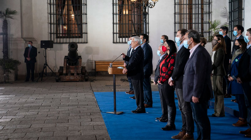 5. “La ciudadanía nos ha enviado un claro y fuerte mensaje”. A las 22.51 horas, el Presidente salió a entregar un mensaje junto a todo el gabinete, que no escondía en sus rostros la desazón. A su lado estaban dos ministras (Gloria Hutt y Carolina Schmidt).