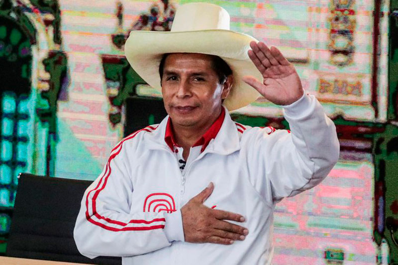 Perú. Pedro Castillo, maestro, de izquierda y Presidente electo