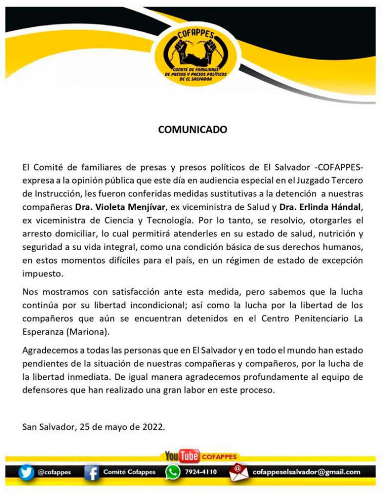 Comunicado: El régimen de excepción y su impacto en los derechos humanos