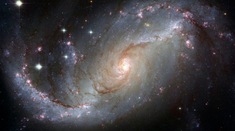 Los colores rojo, naranja y verde representan las longitudes de onda infrarrojas tomadas con WFC3, y el color azul representa los datos de luz visible de ACS.
