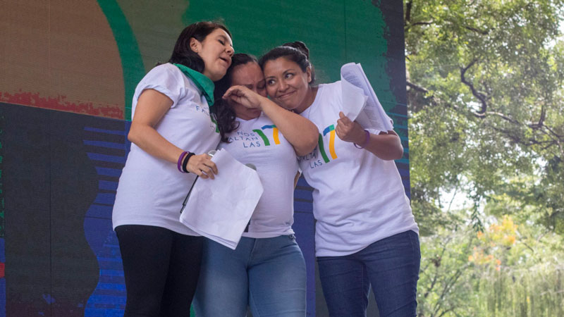 “Somos las 65 que estamos libres, pero también nos faltan muchas mujeres que siguen en prisión y merecen estar con sus hijos y sus familias”, dijo Cinthya, quien cumplió 10 años de prisión tras ser condenada por homicidio agravado en 2009 luego de sufrir una emergencia obstétrica.
