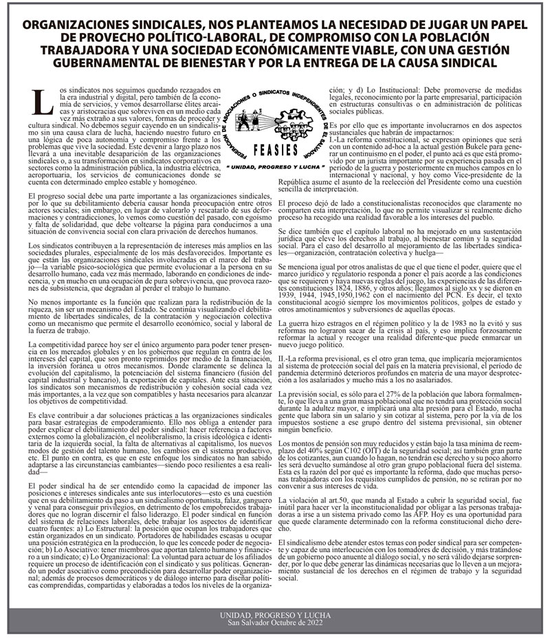 COMUNICADO: Organizaciones sindicales, nos planteamos la necesidad de jugar un papel de provecho político-laboral, de compromiso con la población trabajadora y una sociedad económicamente viable, con una gestión gubernamental de bienestar y por la entrega de la causa sindical.