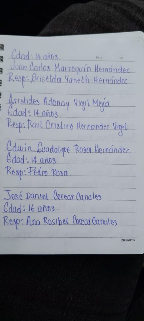 José Ricardo M. (17), Marlon Isaí R. (16), Santos Emerson V. (16), Jesús Roberto D. (16), Juan Carlos M. (14) Arístides Adonay V. (14), Edwin Guadalupe R. 14) y José Daniel C. (16), estudiantes de 7° y 8° grado del Centro Escolar caserío Lempamar.