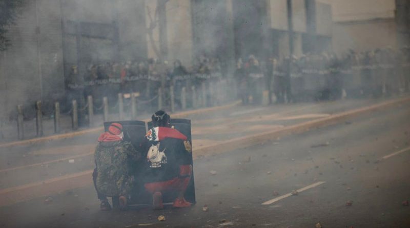 “Vamos pueblo, carajo, el pueblo no se rinde, carajo”, gritaba la multitud en respuesta a los gases lacrimógenos y perdigones disparados por la policía para impedir su avance por las calles de Lima. El centro de la capital fue tomado este martes por manifestantes que exigen la renuncia de la presidenta Dina Boluarte, adelanto de elecciones para este año, una Asamblea Constituyente y el cierre del desacreditado Congreso que controla la derecha. En lo que se ha llamado la “gran marcha nacional”, pobladores llegados desde distintas regiones del país tuvieron participación protagónica en esta manifestación. Hombres y mujeres que viajaron en una larga travesía a Lima desde distintas zonas, especialmente andinas, marchaban con firmeza. Muchos llevaban vestimentas tradicionales de sus regiones poniéndole colorido, decisión y coraje a la protesta.