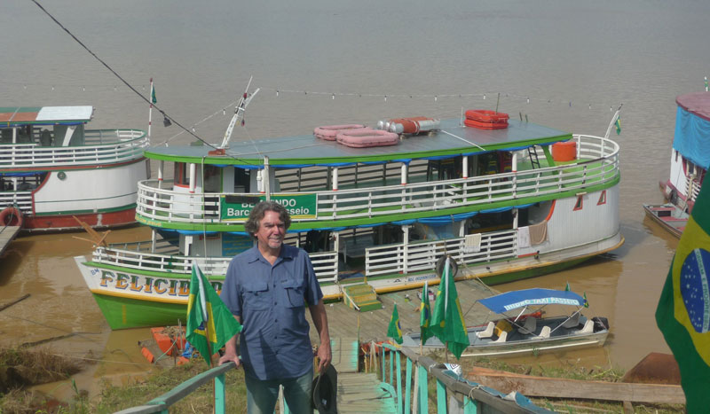 El Madeira impresiona por su caudal, y eso que aún no comenzó la temporada de lluvias. Su torrente es una suerte de sangre nutricional de la selva que se transforma en progenitora hasta del mismo Dios de los cielos, no en vano rio arriba su cauce fue bautizado con el sugestivo nombre de Mae de Deus. Afortunadamente en la margen contraria que enfrenta a la ciudad, la vegetación permanece casi intacta y ofrece un sinfín de tonalidades que impactarían al mismo Lorca obligándole a reescribir su “verde que te quiero verde” para hacerlo aun más verde. Varios de esos barcos blancos de dos pisos que se ven en las películas del trópico y que transportan todo lo que se les ocurra a sus pasajeros, están atracados en un pequeño muelle y me recuerdan tomas de Werner Herzog en Fitzcarraldo con el endemoniado Klaus Kinski. Algunas mujeres lavan ropa en la orilla. Respiro la humedad de la selva y pienso que lejos y atrás en el tiempo queda mi casa porteña.