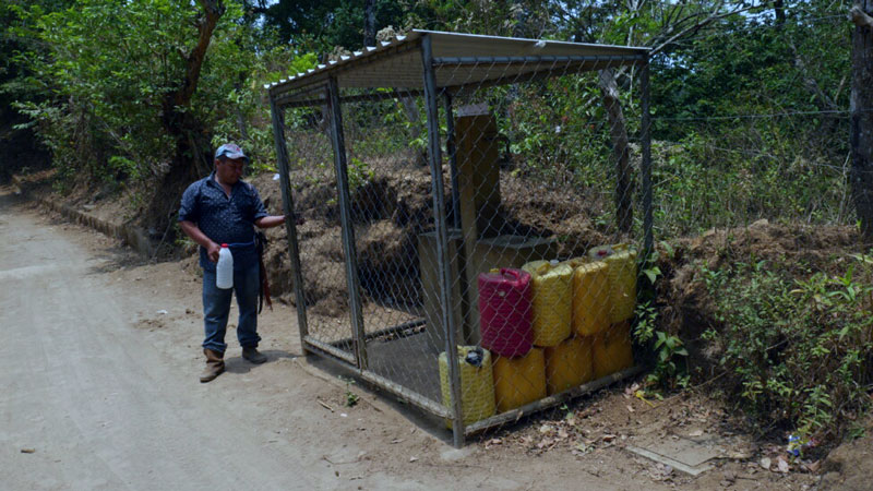 Cuando no cae y se agotan las reservas, las familias tienen que comprar agua a personas que la traen en barriles en sus pick ups, desde Chinameca, a unos 30 minutos en vehículo. Cada barril, que les cuesta unos tres dólares, contiene unos 100 litros de agua.