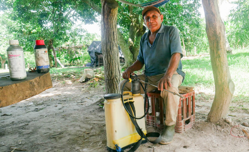 Pérez, de 60 años, dijo estar consciente de los riesgos a su salud, pero aseguró que con la mezcla del agroquímico le resultaba más fácil y más rápido deshacerse de la maleza que crece en su sembradío de maíz, en su finca de dos hectáreas.
