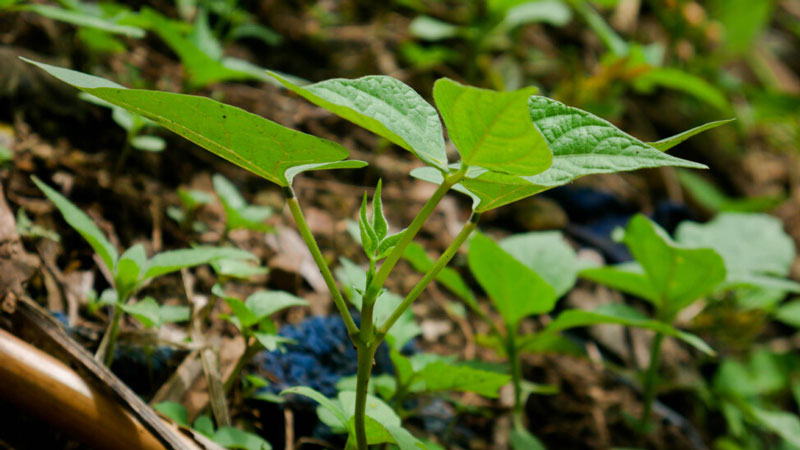 Una planta de frijol se desarrolla en una finca salvadoreña con la incertidumbre de si se malogrará antes de la cosecha. El fenómeno de El Niño ha comenzado a golpear fuertemente la segunda parte del ciclo agrícola de América Central, la llamada cosecha de postrera, en la que los campesinos esperan recuperar algo de las pérdidas sufridas al inicio de ese ciclo, en mayo y junio. Imagen: Edgardo Ayala.