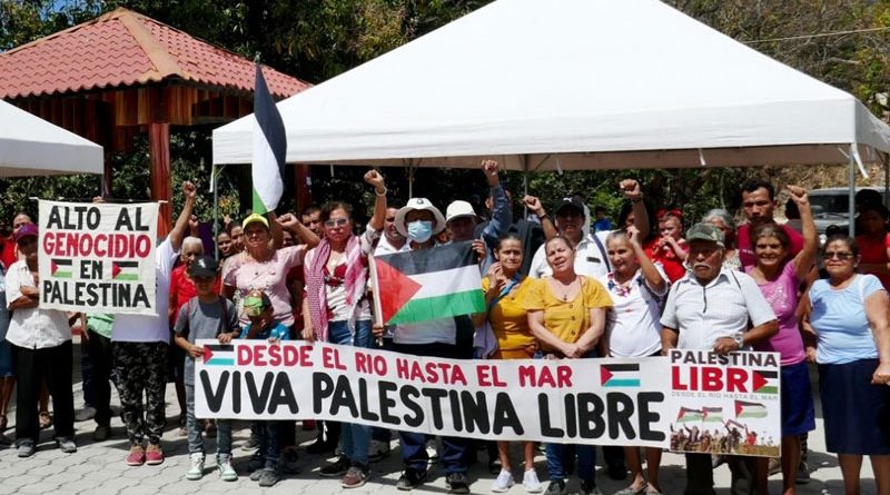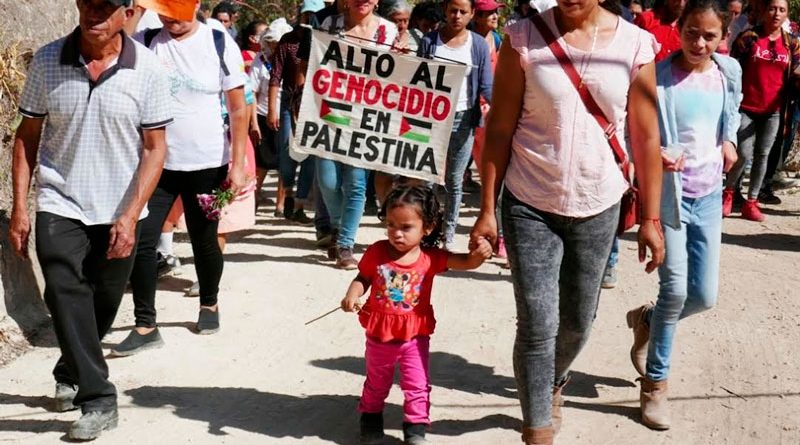El miércoles 14 de febrero 2024 en el marco de la conmemoración del Aniversario 43 de la masacre de centenares de pobladores indefensas del Higueral y sus alrededores por la Dictadura salvadoreña al servicio del Imperio yankee, los pobladores de todas las edades manifestamos nuestra solidaridad con Palestina y nuestra condena al genocidio impulsado por el ocupante “israelI” contra el pueblo originario de la tierra palestina, causando en los últimos 4 meses de bombardeos ya más de 28 mil mártires, entre ellos 13 mil niñas y niños y 68 mil heridos y 7 mil desaparecidos bajo los escombros. ¡SOLO LOS PUEBLOS SALVAN A LOS PUEBLOS!