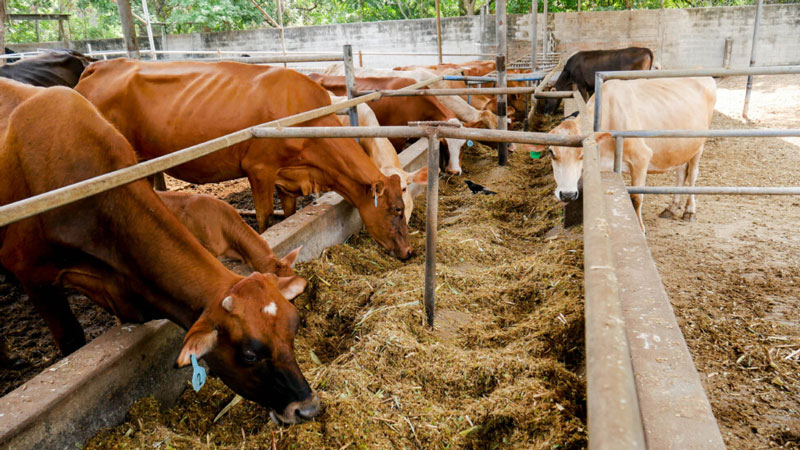La dieta alimenticia del ganado se completa con zacate, como se llama localmente al forraje, y otra leguminosa: Cratylia argéntea, cosechados por él y que corta cada tres meses. También incluye una mezcla de melaza, caña de azúcar y cebada.