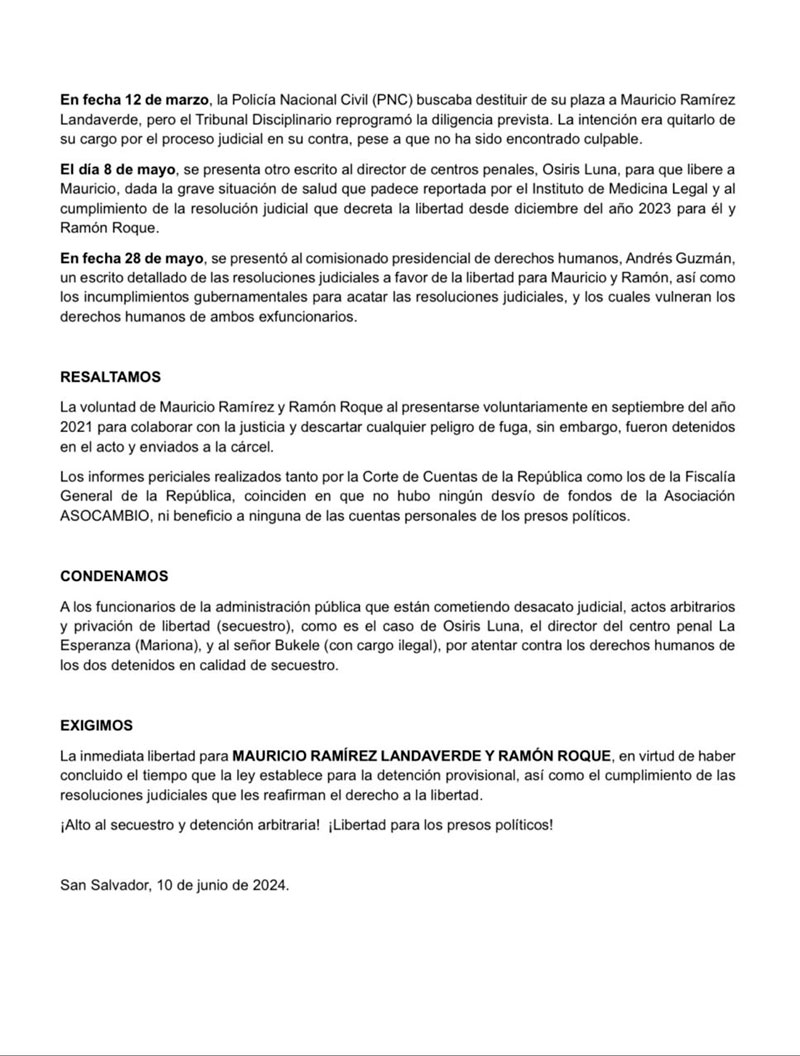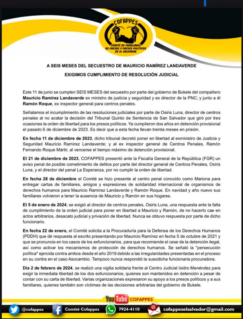 A seis meses del secuestro de Mauricio Ramírez Landaverde exigimos cumplimiento de resolución judicial que le otorga libertad