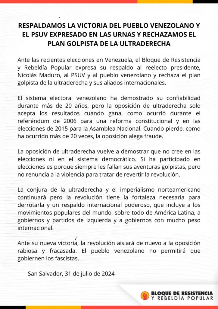 Respaldamos la victoria del pueblo venezolano y el PSUV expresado en las urnas y rechazamos el plan golpista de la ultraderecha.