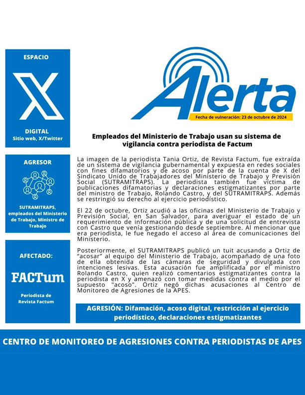 Comunicado Alerta: Empleados del Ministerio de Trabajo usan su sistema de vigilancia contra periodista de Factum