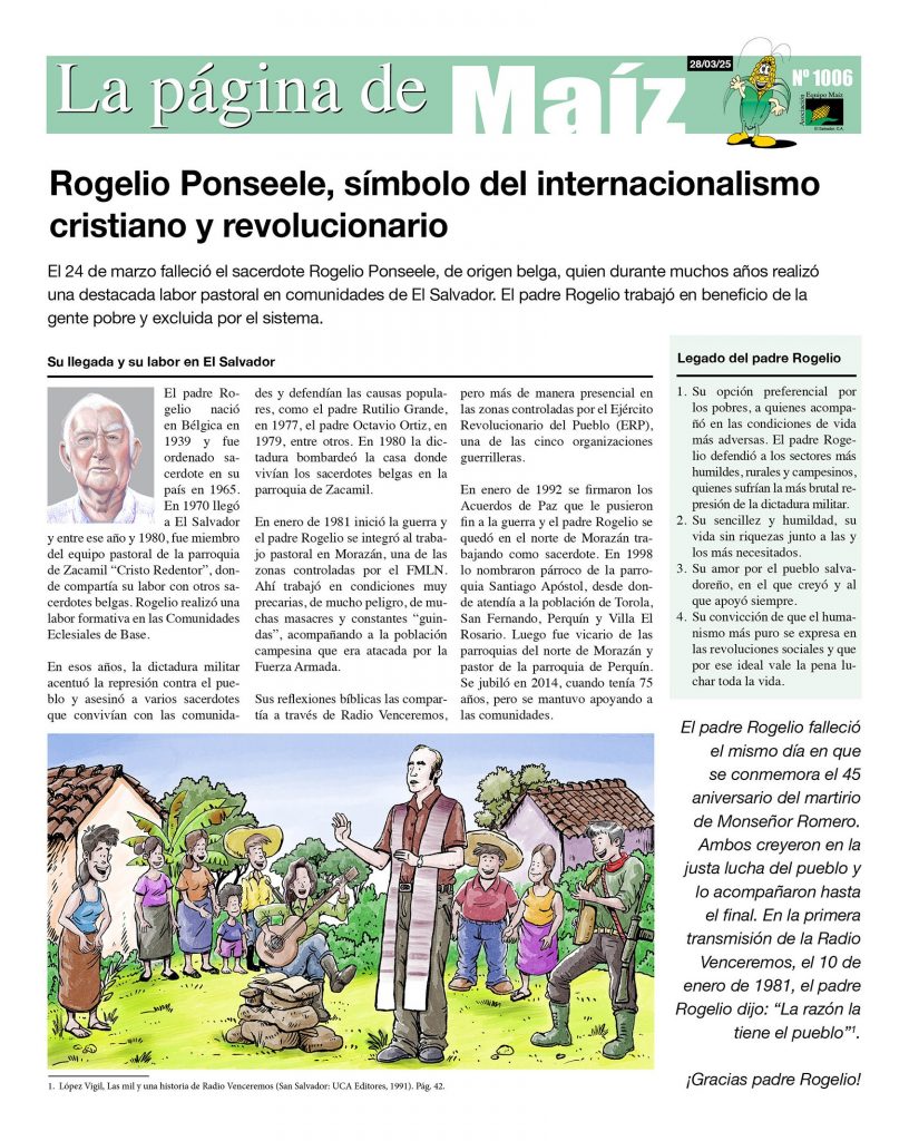 PÁGINA DE MAÍZ: Rogelio Ponceele, símbolo del internacionalismo cristiano y revolucionario.