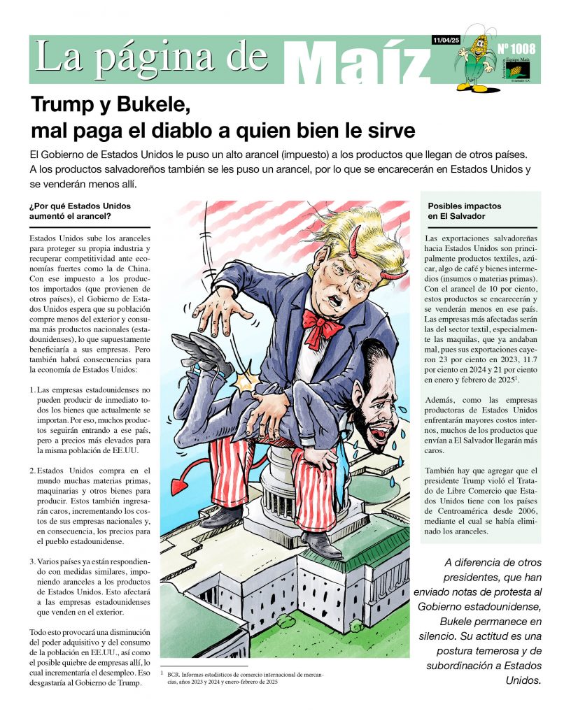 La página de Maíz. Trump y Bukele, mal paga el diablo a quien bien le sirve.