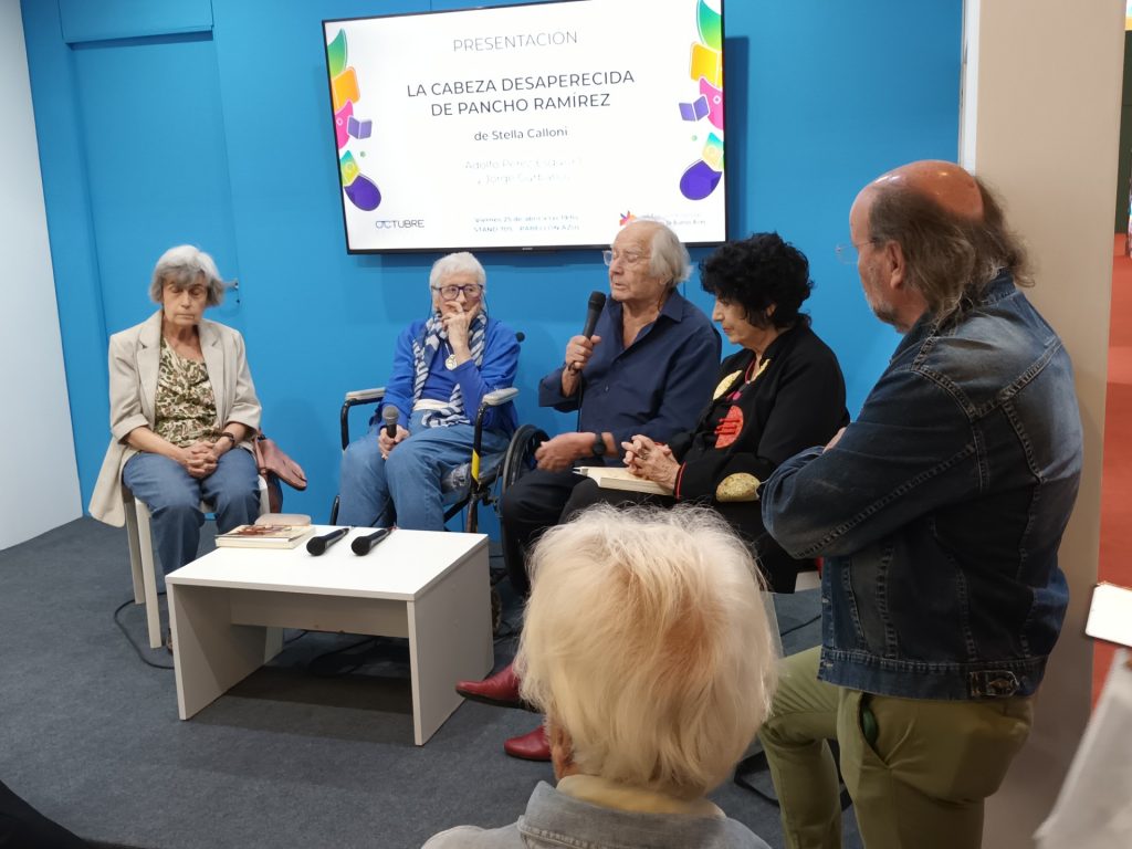 La bella historia que la autora rescata de las brumas y rincones de la historia oficial fue editada por Peña Lillo-Ediciones Continente y se presentó en el stand de Página/12 por el premio Nobel de la Paz Adolfo Pérez Esquivel, Luisa Valenzuela y Marta Vasallo y el editor Jorge Gurbanov. Vale destacar algunos pasajes de los comentarios de Pérez Esquivel, unas verdaderas perlitas. Aprovechando la trama histórica de la novela de Calloni, señaló que precisamente su protagonista fue un desaparecido al que le sustrajeron nada menos que la cabeza. Agregó que en estos tiempos de derrotismo y avance de una neo derecha extrema, la militancia debe acentuar su lucha y no rumiar amargura, para lograr un país Federal en lugar del país Feudal al que nos ha reducido hoy este desgobierno de Milei. Por otra parte, como mentor del Servicio de Paz y Justicia no pudo menos que mencionar aquel pedido del Papa Francisco: “¡Hagan Lío”! La lucha por transformar la realidad se hace con alegría, un militante amargado, no es un militante sino un amargado, causando un aplauso del auditorio.