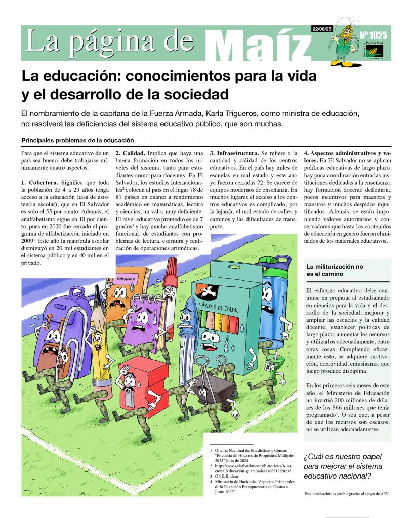 La página de maíz. La educación: conocimientos para la vida y el desarrollo de la sociedad.