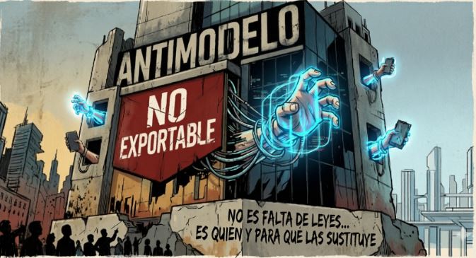 – En un modelo democrático, la ley es el árbitro; en el Antimodelo, el árbitro se quita la camiseta neutral, se pone la del gobierno y pita según le convenga al algoritmo del momento.